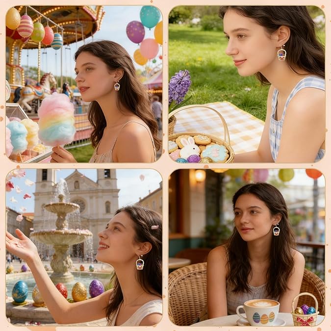 http:// Celebrate in style with this fun 2-piece Easter earring set. Featuring cute spring rabbits and colorful basket egg designs, these glitter drop earrings add playful charm to any holiday outfit. Perfect for parties, brunch, or festive photos. 🐰🥚✨ Key Features: These cheerful earrings make every outfit more fun. They are the perfect accessory for Easter celebrations and spring gatherings.