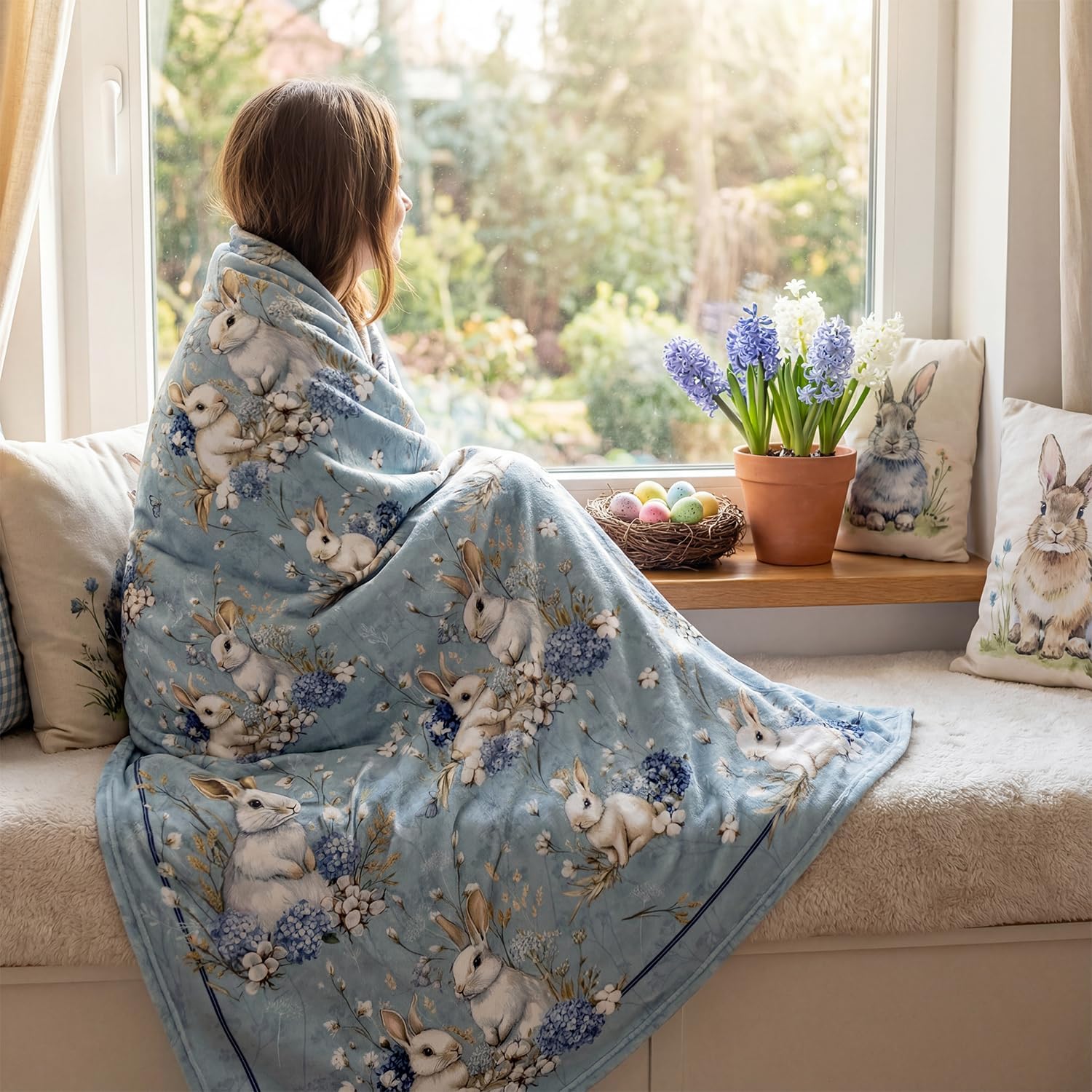 Horaldaily Easter Flannel Throw Blanket – Bunny, Eggs & Floral Cozy